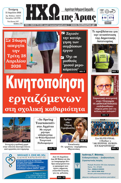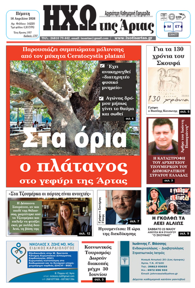 Ο Δήμος Αρταίων ενημερώνει τους δημότες ότι η παιδική χαρά στην πλατεία Σκουφά, η οποία παρέμεινε κλειστή το…