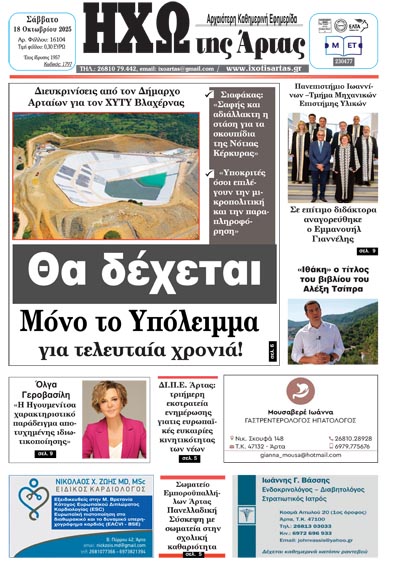Δευτέρα 20 Οκτωβρίου 2025, 19.30 μ.μ.