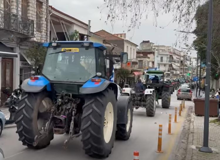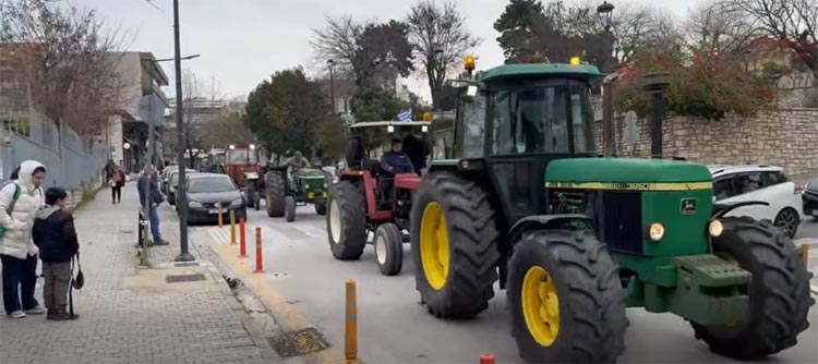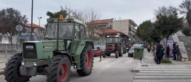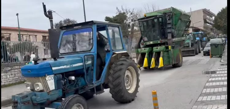 Με τα τρακτέρ φεύγοντας από το μπλόκο της Ιονίας διέσχισαν την πόλη, ρίχνοντας και μια κουβαδιά βαμβάκι και κάμποσα πορτοκάλια στα σκαλιά της πρώην Αγροτικής, κάνοντας το ίδιο και στην πλατεία Κιλκίς, όπου σταμάτησαν για λίγο.