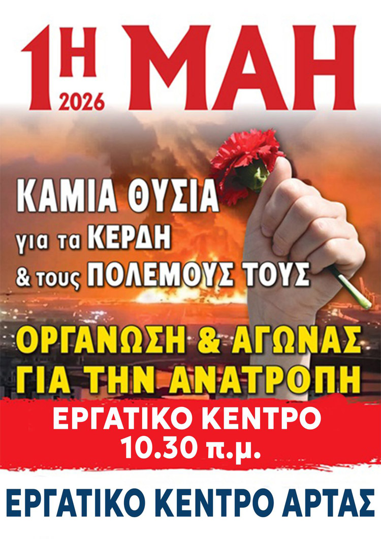 Ανακοίνωση του Εργατικού Κέντρου Άρτας για την απεργία της 1ης Μάη 2026