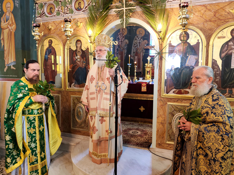 Στο τέλος της Θείας Λειτουργίας έγινε μικρή λιτανεία εντός του Ιερού Ναού για τον αγιασμό των Βαΐων.