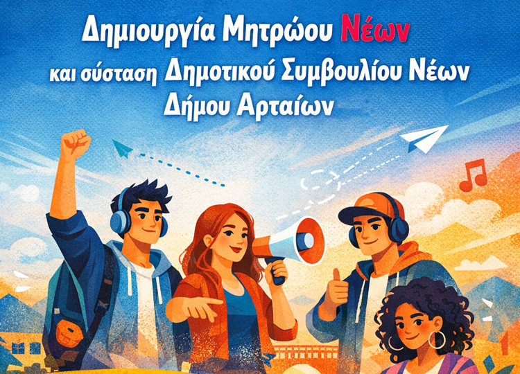 Ο Δήμος Αρταίων καλεί τη νεολαία της πόλης να συμμετάσχει ενεργά, να εκφράσει τις ιδέες της και να συμβάλει δυναμικά στη διαμόρφωση του μέλλοντος του τόπου.