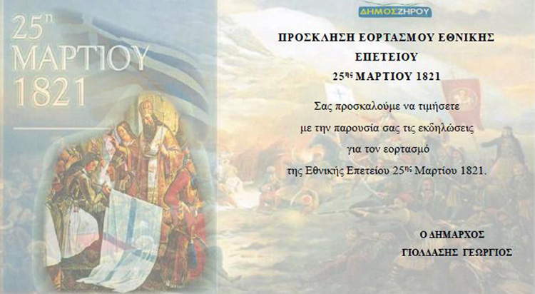 Δήμος Ζηρού: πρόγραμμα εορτασμού της Εθνικής Επετείου της 25ης Μαρτίου 1821.