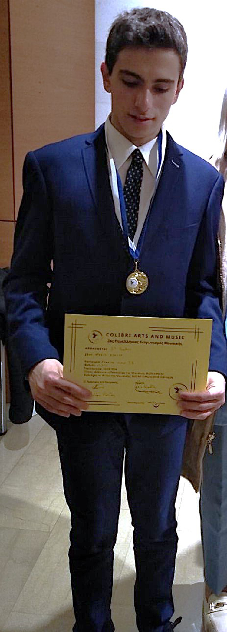 και απέσπασε για την ερμηνεία του, το 2ο Βραβείο στην κατηγορία Κλασικό Πιάνο.