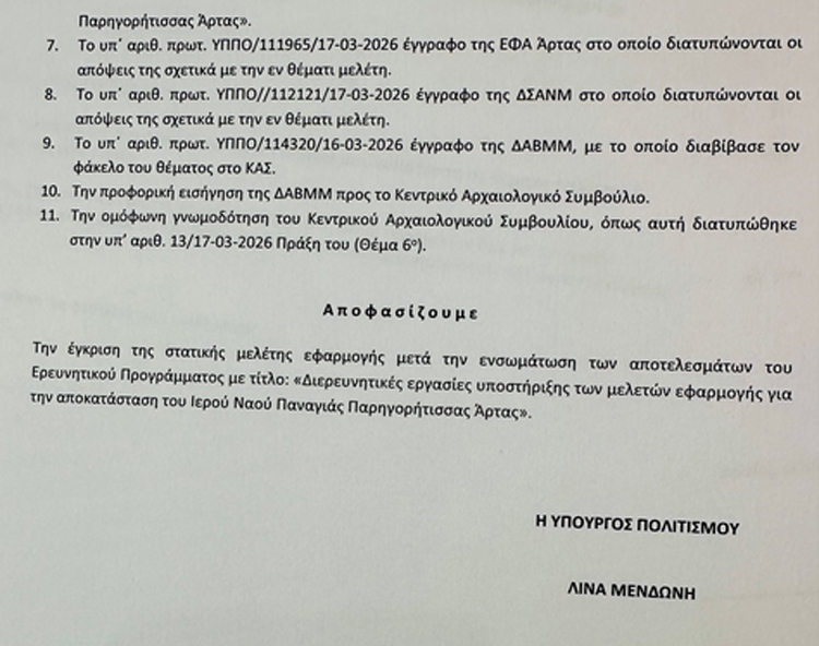 Ο Περιφερειάρχης Ηπείρου Αλέξανδρος Καχριμάνης ανακοινώνει πως εγκρίθηκε η Στατική Μελέτη μέσω Ερευνητικού του ΕΜΠ και της Περιφέρειας Ηπείρου του Ιερού Ναού της Παρηγορήτισσας στην Άρτα. Το Μεγαλύτερο Έργο σε Μνημείο Βυζαντινό από Το ΕΣΠΑ Ηπείρου.