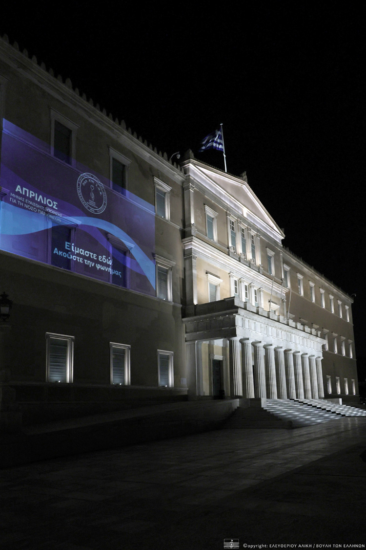Φωταγώγηση της Βουλής για την Παγκόσμια Ημέρα Πάρκινσον