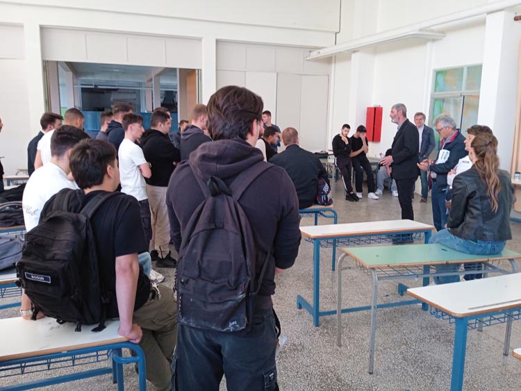 Ο Βουλευτής του Κόμματος Νίκος Έξαρχος τόνισε προς τους σπουδαστές πως “είστε παιδιά λαϊκών οικογενειών και δεν έχετε καμία σχέση με τα συμφέροντα και τα κέρδη των εφοπλιστών”, προτρέποντας τους να οργανωθούν στα Ταξικά Σωματεία και να συμμετάσχουν στις απεργιακές συγκεντρώσεις της 1ης Μάη.