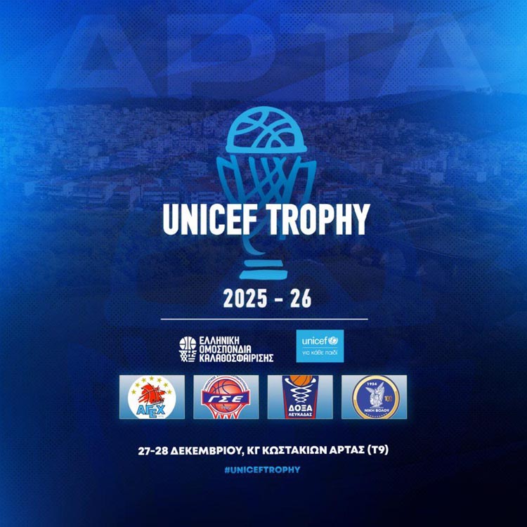 Το UNICEF Trophy επανέρχεται για τέταρτη σεζόν, σε μια σημαντική πανελλήνια μπασκετική διοργάνωση που έχει πλέον εξελιχθεί σε θεσμό, με τους τέσσερις διεκδικητές του τροπαίου (Νίκη Βόλου, ΑΓΕΧ, Ελευθερούπολη, Δόξα Λευκάδας), να δίνουν ραντεβού στην Άρτα και το Κλειστο Τ9 Κωστακίων το διήμερο 27-28 Δεκεμβρίου 2025.