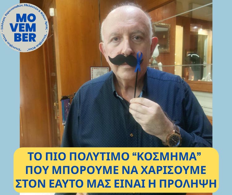 Ο Γιώργος Ζάγκλης, κοσμηματοπώλης από μια οικογένεια με μακρά παράδοση στο χώρο και σταθερός υποστηρικτής των «Επιστήθιων Φίλων», συμμετέχει φέτος στη δράση Movember και στέλνει το δικό του μήνυμα για την πρόληψη. Στη φωτογραφία του, συνοδεύει τη συμμετοχή του με μια αλήθεια που ταιριάζει απόλυτα στο επάγγελμα και στη στάση ζωής του: «Η πρόληψη είναι το πιο πολύτιμο “κόσμημα” που μπορούμε να χαρίσουμε στον εαυτό μας….