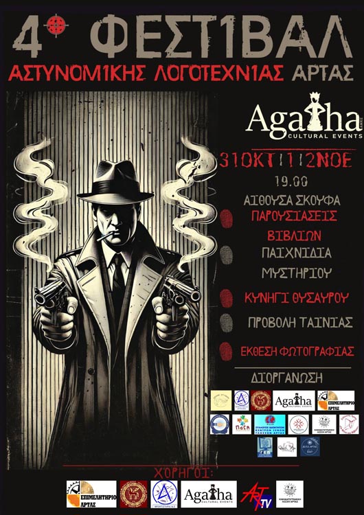 Το Φεστιβάλ αστυνομικής Λογοτεχνίας επιστρέφει για 4η χρονιά στην Άρτα με πολλές δράσεις για μικρούς και μεγάλους, παρουσιάσεις βιβλίων, παιχνίδια μυστηρίου, έκθεση φωτογραφίας, κυνήγι θησαυρού, προβολή ταινίας και όχι μόνο.