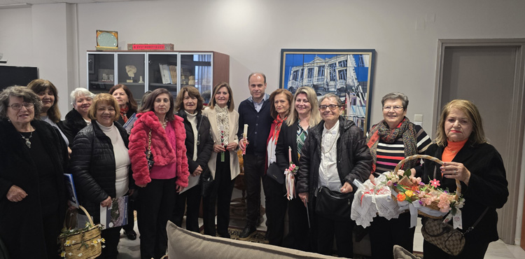 Ο Δήμαρχος Αρταίων κ. Χριστόφορος Σιαφάκας υποδέχθηκε τις κυρίες, οι οποίες τραγούδησαν τα παραδοσιακά τραγούδια του Λαζάρου, προαναγγέλλοντας τον εορτασμό του Σαββάτου του Λαζάρου και μεταφέροντας το πνεύμα της Εβδομάδας των Παθών.
