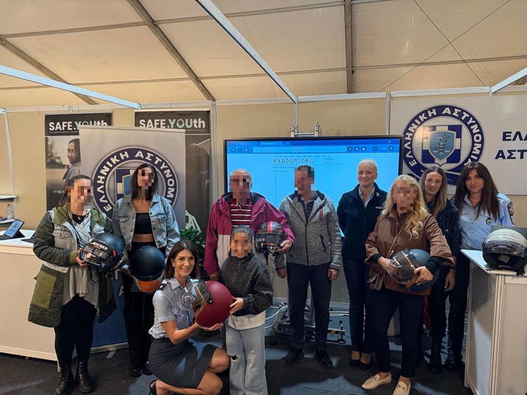 Ακόμα, -8- συνολικά τυχεροί και τυχερές μεταξύ των επισκεπτών κέρδισαν από ένα προστατευτικό κράνος μοτοσικλέτας, ενώ άλλοι -280- από ένα usb memory stick με το έμβλημα της Ελληνικής Αστυνομίας, στο πλαίσιο ηλεκτρονικής κλήρωσης που πραγματοποιούνταν καθημερινά.