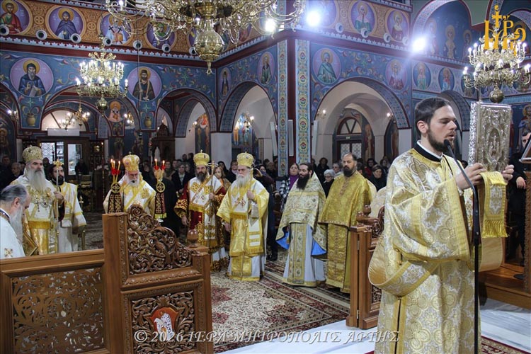 Με λαμπρότητα, ετελέσθη το πρωί της Τετάρτης 21 Ιανουαρίου 2026, η Πανηγυρική Πολυαρχιερατική Θεία Λειτουργία επί τη μνήμη του Οσίου Πατρός ημών Μαξίμου του Γραικού, στον φερώνυμο Ενοριακό Ιερό Ναό της πόλεως Άρτης, προεξάρχοντος του Σεβασμιωτάτου Μητροπολίτου Ιλίου, Αχαρνών και Πετρουπόλεως κ. Αθηναγόρου και συλλειτουργούντων του Σεβασμιωτάτου Μητροπολίτου Ελασσώνος κ. Χαρίτωνος, του Θεοφιλεστάτου Επισκόπου Ματζούγκας και Βορείου Μαδαγασκάρης κ. Νήφωνος και του Σεβασμιωτάτου Μητροπολίτου Άρτης κ. Καλλινίκου.