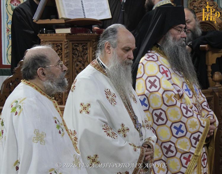Στο πέρας της Θείας Λειτουργίας, ο Σεβασμιώτατος Μητροπολίτης Άρτης κ. Καλλίνικος απηύθυνε λόγους ευχαριστίας προς τους Αρχιερείς για την τιμητική παρουσία και τη συμμετοχή τους στην πανήγυρη και ευχήθηκε να καταστούμε “συμπολίται των αγίων και οικείοι του Θεού”.