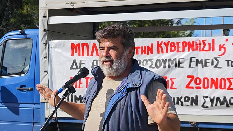 «Ήρθαμε εδώ σήμερα για να βαστήξουμε. Ήρθαμε εδώ σήμερα για να συνεχίσουμε τον αγώνα. Ήρθαμε εδώ όχι με μια σκοπιμότητα εθιμοτυπική, όχι γιατί μας αρέσει να βγαίνουμε στους δρόμους, μας αρέσει να καθόμαστε και στα σπίτι μας και να διασκεδάζουμε. Ήρθαμε εδώ γιατί αυτή η πολιτική, η οποία εξαφανίζει αυτό το κλάδο, είναι πολιτική που εκπορεύεται από αλλού, είναι πολιτική της Ευρωπαϊκής Ένωσης, είναι πολιτική που στοχεύει πανευρωπαϊκά, αλλά και τοπικά εδώ στη χώρα μας στο να συρρικνώσει την αγροτική παραγωγή, να τις συγκεντρώσει σε λίγα χέρια. Δεν τους φτάνει και δεν τους αρκεί και δεν θέλουν να ταΐσουν το λαό. Θέλουν να πουλάνε βιομηχανικά προϊόντα σε τρίτες χώρες και να εισάγουν από αυτές».