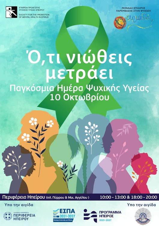 Παγκόσμια Ημέρα Ψυχικής Υγείας Κοινοτική δράση με τίτλο «Ό,τι νιώθεις μετράει!» στα Γιάννενα/