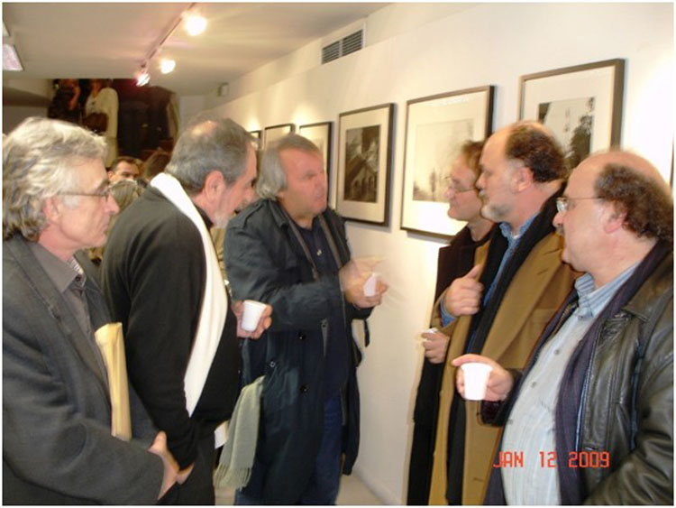 Ο Γ. Βότσης (δεύτερος από αριστερά), με τους συναδέλφους του Αντρέα Ρίζο (αριστερά), Γιώργο Μουσγά και Γιώργο Παπασωτηρίου (δεξιά) και τους συγγραφείς Βαγγέλη Κούτα και Σωτήρη Δημητρίου (κέντρο), σε εκδήλωση της Π.Σ.Ε. στις 12.1.2009 / Αρχείο του δημοσιογράφου Μπάμπη Αρτινού.