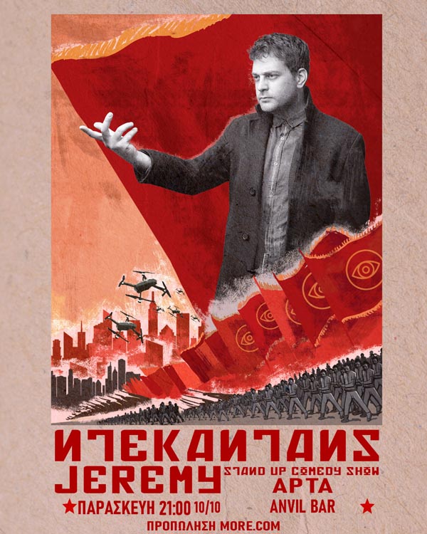 Μίαstandupcomedy παράσταση “Ντεκαντάνς” με τον Jeremyθα γίνει στο AnvilBar στις 10 Οκτωβρίου στην Άρτα.Η παράσταση του Jeremy αποτελεί μία κωμική βουτιά στην παρακμή του σήμερα από ανεπιθύμητες μελιτζάνες στα socialmediaεως την συνέντευξη για ενοικίαση σπιτιού που θυμίζει κάτι απο εισαγωγικές στο Harvard και όλα αυτά για 25 τ.μ ημιυπόγειο.