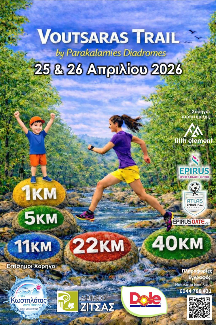 Οι Παρακαλάμιες Διαδρομές σε συνεργασία με τον Δήμο Ζίτσας, διοργανώνουν αθλητική εκδήλωση ορεινού τρεξίματος με αφετηρία και τερματισμό στο Βουτσαρά του Δήμου Ζίτσας Ιωαννίνων, η οποία θα πραγματοποιηθεί στις 25 & 26 Απριλίου 2026.
