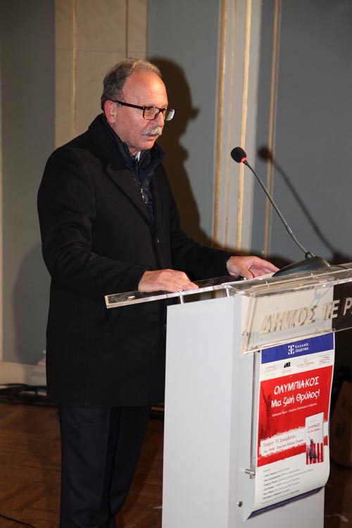 Ο Πρόεδρος της Φιλολογικής Στέγης Πειραιώς και συγγραφέας Στέφανος Μίλεσης αναφέρθηκε σε προσωπικές αναμνήσεις και βιώματα μιας γενιάς ναυτικών που έζησαν στον Πειραιά τα παλαιότερα χρόνια. Οι ναυτικοί εκείνης της εποχής παρότι γύριζαν σε όλα τα πλάτη και μήκη της γης, φρόντιζαν να μάθουν ανάμεσα στα νέα των οικογενειών τους και για τα παιχνίδια του Ολυμπιακού τον οποίο ουδέποτε λησμονούσαν σε όποιο μέρος του κόσμου κι αν βρίσκονταν. Ο Ολυμπιακός είχε ταυτιστεί με το ναυτικό κόσμο του Πειραιά και αποτελούσε μέρος της ζωής τους.