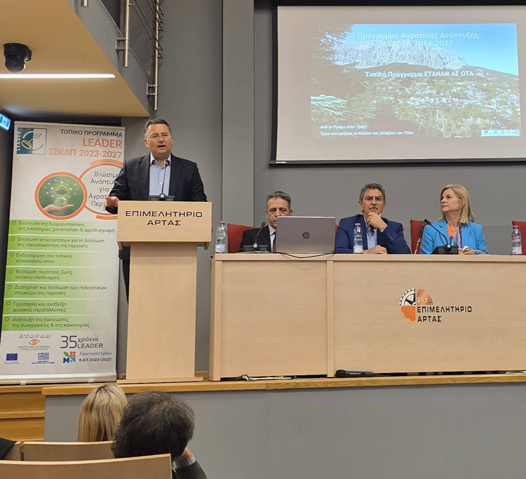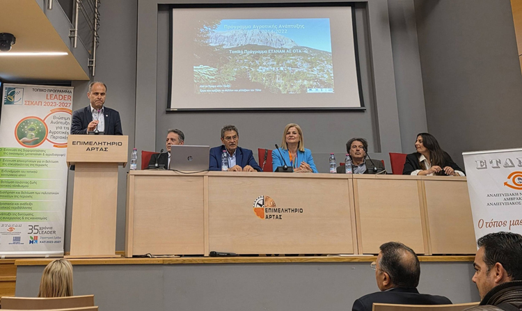 Πραγματοποιήθηκε στην αίθουσα του Επιμελητηρίου Άρτας η παρουσίαση του προγράμματος LEADER για την προγραμματική περίοδος 2023-2027 παρουσία του Ιωάννη Κοβάνη, προϊσταμένου Μονάδας Τοπικής Ανάπτυξης της ειδικής Υπηρεσίας εφαρμογής παρεμβάσεων Αγροτικής Ανάπτυξης, υπεύθυνου του προγράμματος LEADER για όλη την Ελλάδα.