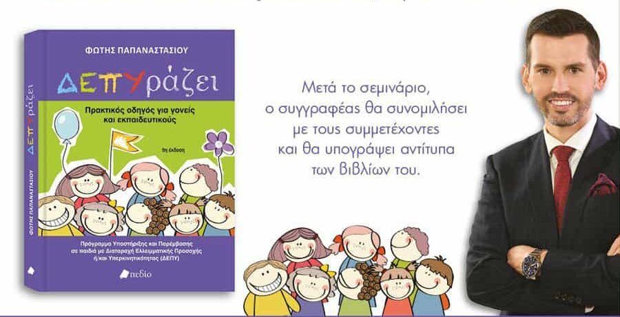 Το Κέντρο Θεραπείας και Εξέλιξης “Ειρήνη Μικροβά”, με αφορμή το βιβλίο «ΔΕΠΥράζει – Πρακτικός οδηγός για γονείς και εκπαιδευτικούς» του ειδικού παιδαγωγού Δρ. Φώτη Παπαναστασίου, διοργανώνει εκπαιδευτικό σεμινάριο με θέμα: «Διαταραχή Ελλειμματικής Προσοχής ή/και Υπερκινητικότητας – ΔΕΠΥ».
