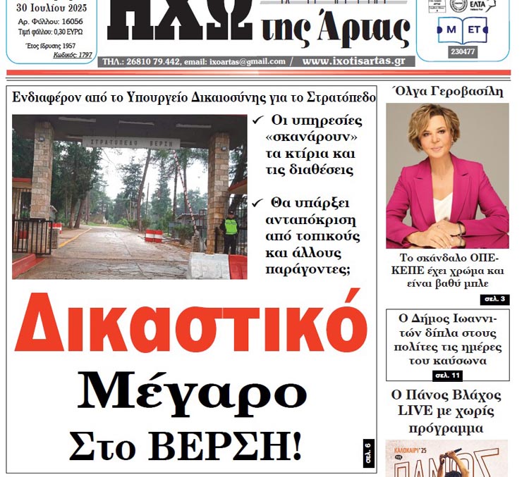«Οι εξελίξεις αυτές επιβεβαιώνουν πλήρως την ΗΧΩ της Άρτας που σε ρεπορτάζ από τις 29 Ιούλιου 2025 καταγράφαμε την πιθανότητα να μεταφερθεί το «Δικαστικό Μέγαρο Στο ΒΕΡΣΗ!»
