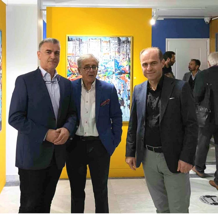 Ο Αντιπεριφερειάρχης Άρτας Βασίλης Ψαθάς και ο Δήμαρχος Αρταίων στα εγκαίνια της αναδρομικής έκθεσης του Αρτινού ζωγράφου και καλλιτέχνη, Δημήτρη Βάσσου, στη Δημοτική Πινακοθήκη.