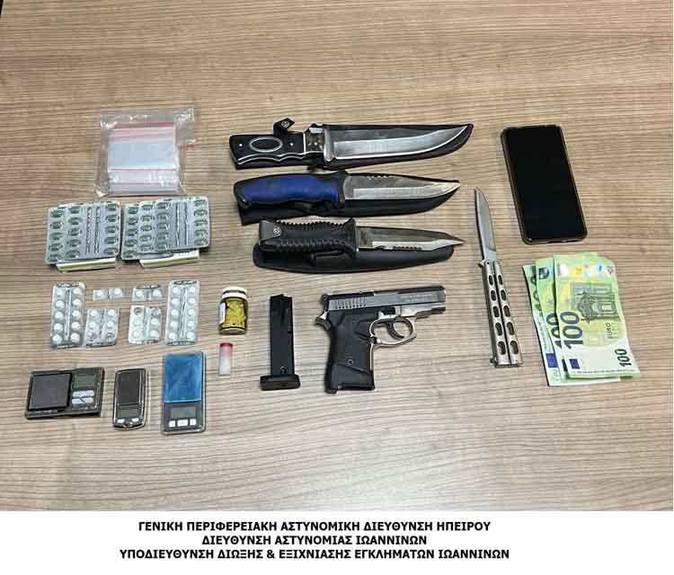 Συνελήφθη στις 11-01-2026 βράδυ στα Ιωάννινα από αστυνομικούς του Τμήματος Δίωξης Ναρκωτικών της Υποδιεύθυνσης Δίωξης και Εξιχνίασης Εγκλημάτων Ιωαννίνων ημεδαπός, σε βάρος του οποίου σχηματίστηκε κακουργηματικού χαρακτήρα δικογραφία για διακίνηση ναρκωτικών και οπλοκατοχή.