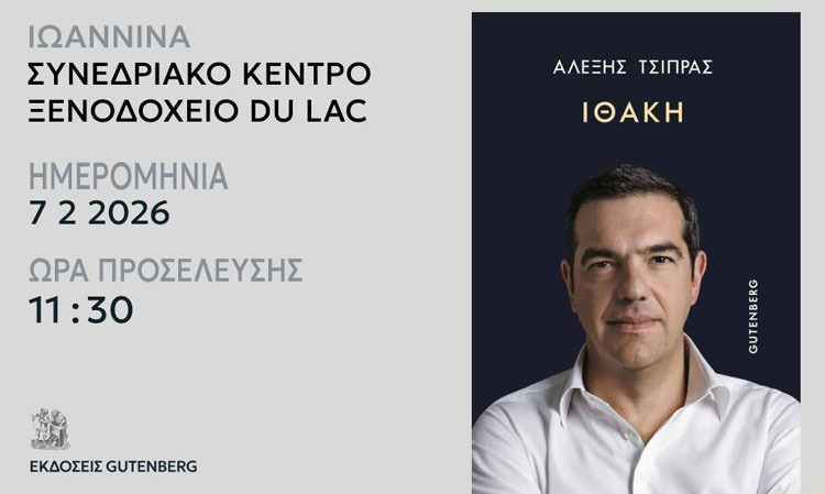 Συγκεκριμένα, το Σάββατο 7 Φεβρουαρίου στα Ιωάννινα στο Συνεδριακό κέντρο – Ξενοδοχείο Du Lac (Κ. Παπούλια & Ικκου, Ιωάννινα) θα πραγματοποιηθεί η επόμενη παρουσίαση της «Ιθάκης» του Αλέξη Τσίπρα.