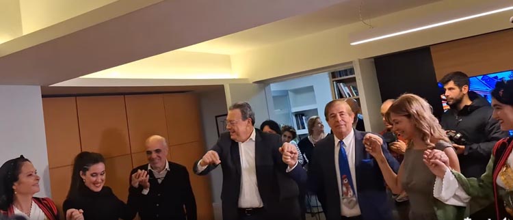 Ο Πρόεδρος του ΣΥ.ΡΙΖ.Α. , Σωκράτης Φάμελλος μετά τα Ηπειρώτικα κάλαντα από την Πανηπειρωτική Συνομοσπονδία Ελλάδας , έριξε ένα χορό με την παραδοσιακή κομπανία Λαληταδες. Ο Αντώνης Κοντός ήταν εκεί.