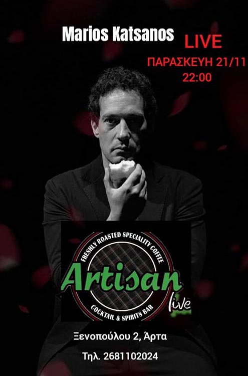 Ο συνθέτης τραγουδοποιός Μάριος Κατσάνος έρχεται στην ‘Αρτα για μια Live εμφάνιση στο Cafe – Bar Artisan αυτήν την Παρασκευή 21 Nοεμβρίου στις 22:00.