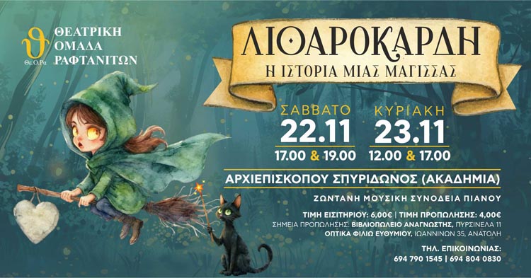 Η Θεατρική Ομάδα Ραφτανιτών παρουσιάζει το όμορφο παραμύθι η «Λιθαρόκαρδη», σε διασκευή Γιάννας Παππά και μουσική επιμέλεια, συνοδείας πιάνου, της Σοφίας Βλάχου.
